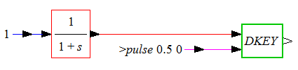 На блок DKEY действует входной сигнал типа "импульсы", который записывается как "$>pulse 0.5 0".